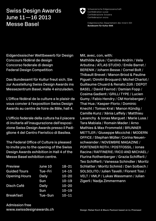 Swiss Design Awards Personal Invitation Cards